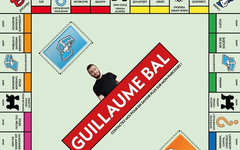 为了在众多求职者里脱颖而出,传播学专业的Guillaume另辟蹊径——把自己的简历做成了“大富翁(monopoly)”游戏!明年6月毕业的Guillaume希望能够找到一份市场营销的工作,受到疫情影响,实现目标的难度系数直线上升。脑洞大开的Guillaume便把自己的简历和“大富翁”游戏融合在了一起,放在了自己的LinkedIn主页上。
