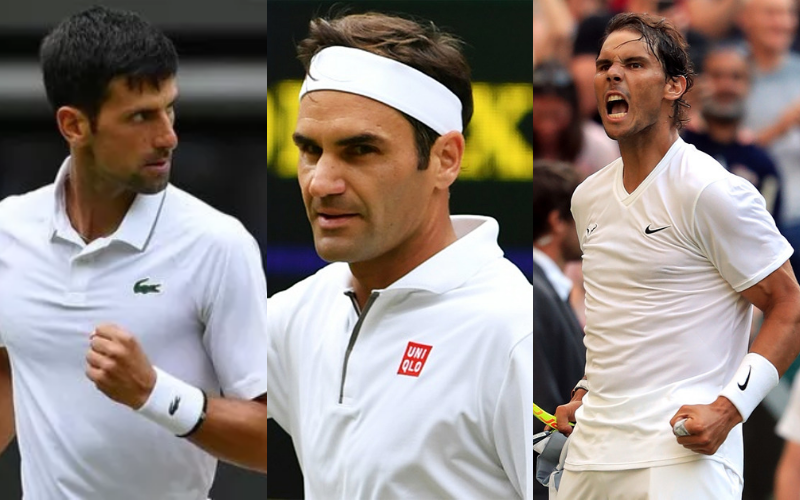 截至目前,男子网坛获得大满贯次数最多的球员从左到右分别为:德约科维奇(19),费德勒(20),纳达尔(20)