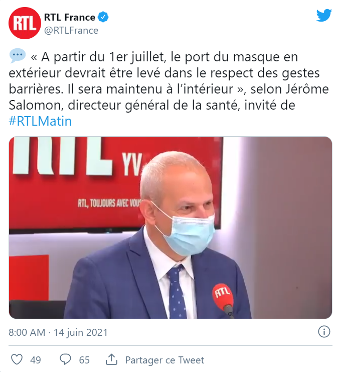 卫生部长Véran向法新社(AFP)表示,对于“户外是否可以摘口罩”这件事,政府还没有做出决定,专家们将会在6月底根据疫情做出判断。