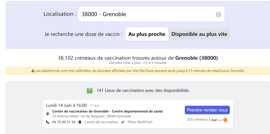 给孩子预约接种的流程和成年人并没有什么区别,小编这里以Vite Ma dose为例,给大家简单演示一下。