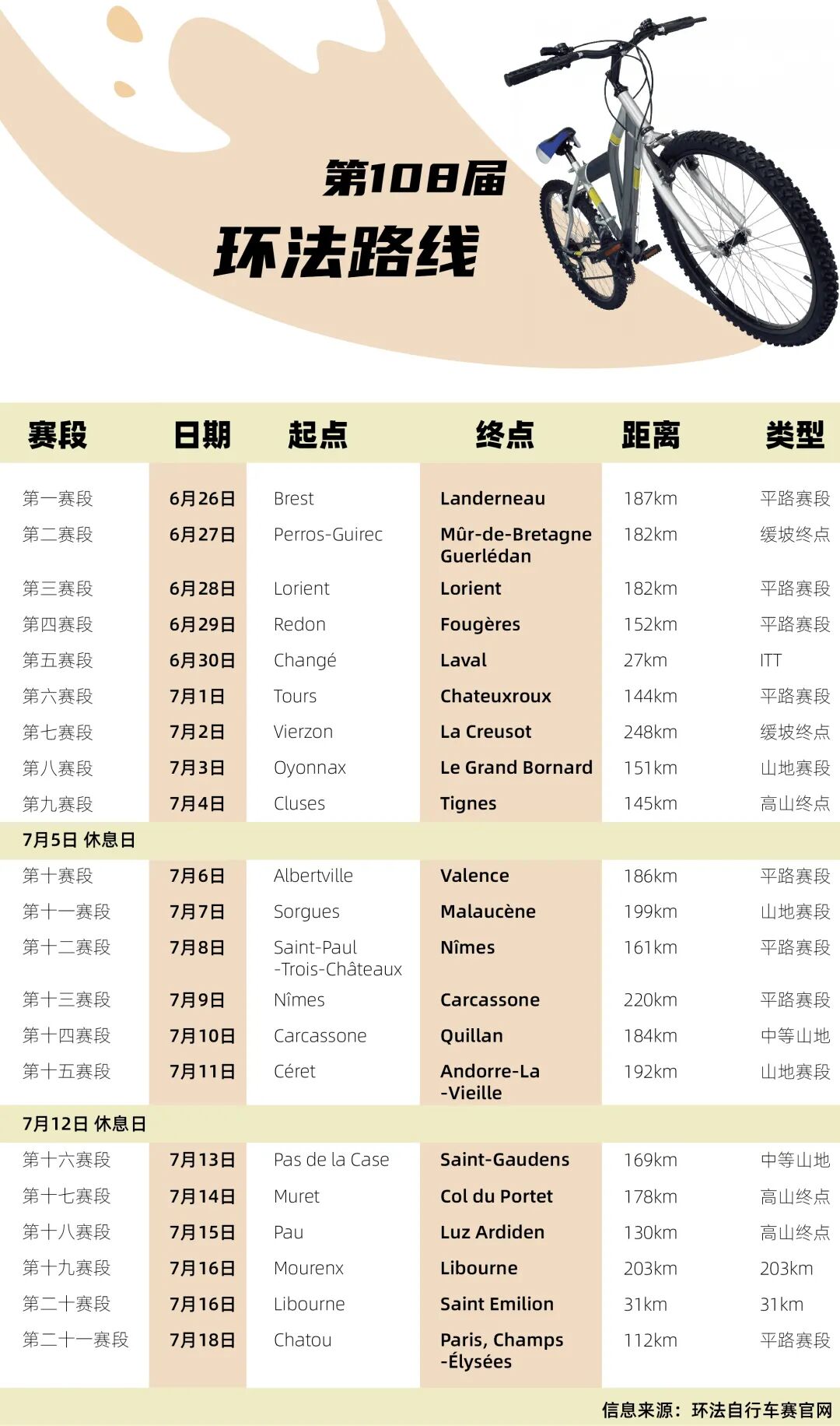 赛 事:第108届环法自行车赛
