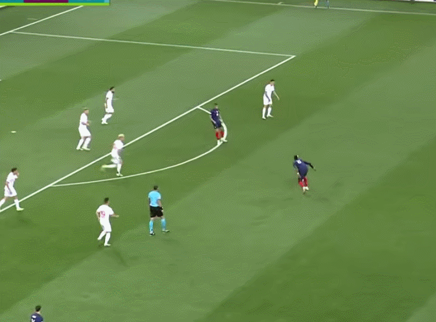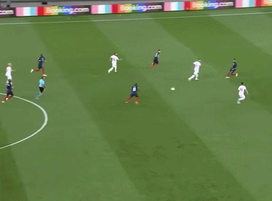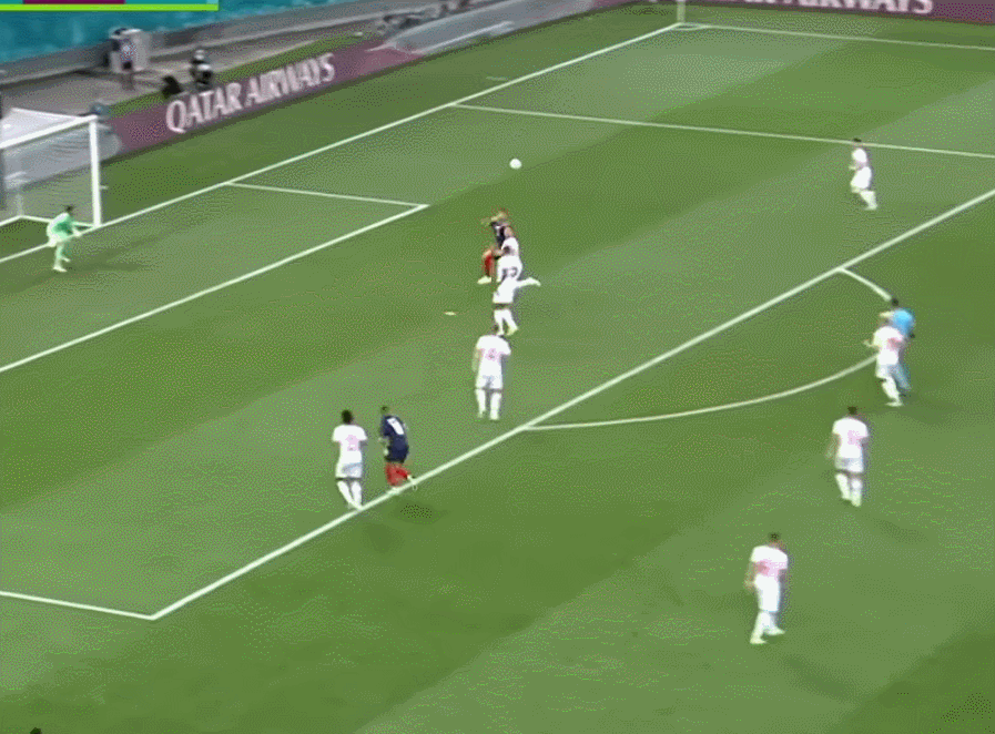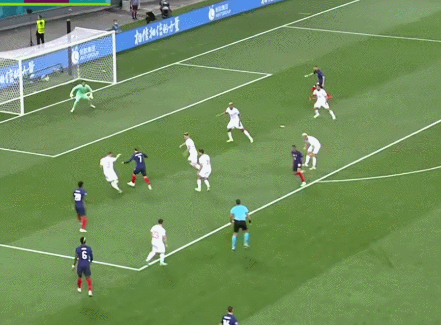 但要说他对法国队毫无贡献吗?那也不是,在这场和瑞士的比赛中,正是姆巴佩的一记传球给了本泽马射门得分的机会。