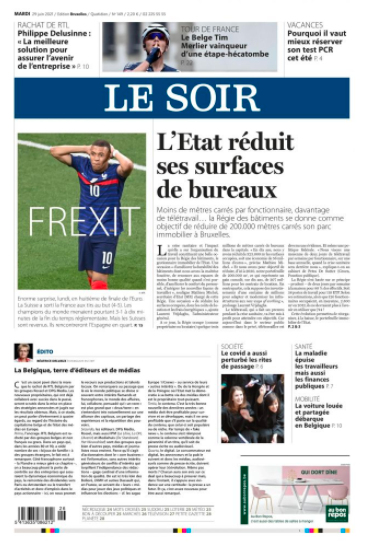 比利时《Le soir》:法国出局(Frexit,注:Brexit原指英国脱欧,Frexit就变成了“法国从欧洲杯出局”)!由于姆巴佩的失败,世界冠军回家了!