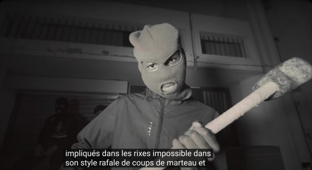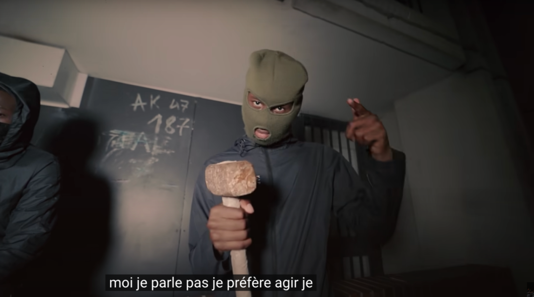 在这支视频中,三名少年通过歌词“赞扬”了法国不久前发生的一起暴力袭击事件:15岁少年Dramane于5月在学校门口被人用锤子砸成重伤,袭击他的一群人用面具和帽子挡住了脸。