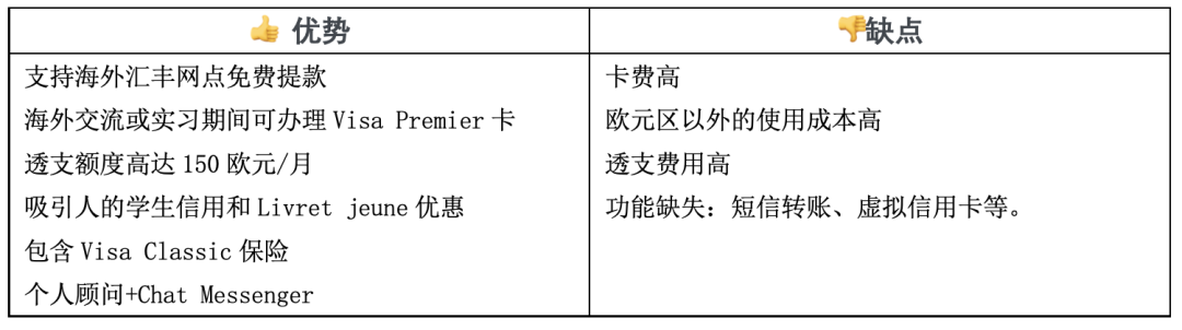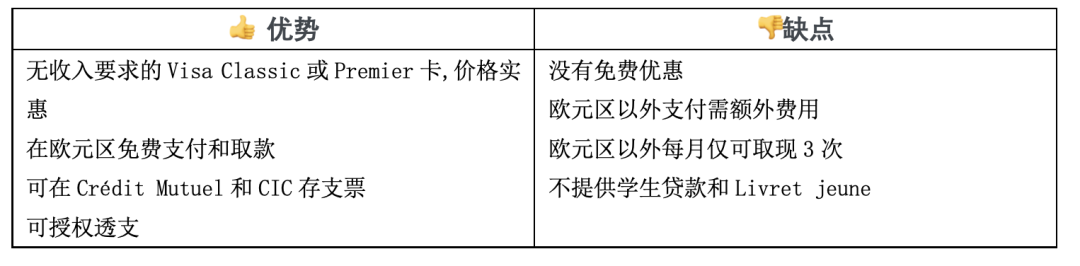 尽管Crédit Mutuel第一年不会收取卡费,但是第二年开始,学生每年都需要缴纳21欧元的费用。光这一点,和网上与手机银行的优惠条件就没得比。不过,对于很多对线上银行不放心的同学来说,Crédit Mutuel不失为一个好选择。而且,包含的银行顾问服务也是传统银行的一大优势。