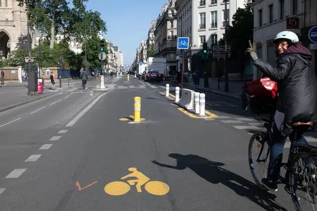 在2020年第一次封锁期间,巴黎把40英里长的道路变成了自行车道,人们称之为“电晕车道”(“corona lanes”)。巴黎著名街道里沃利大街以及多条道路都仅限自行车通行,而这是一项永久性的举措,预计巴黎会有大约百分之七的人在明年就不再用汽车了。