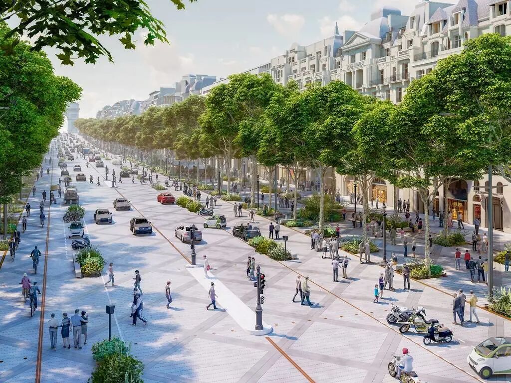 到2030年,巴黎最著名的香榭丽舍街道也将变成一个“非凡花园”,政府将动用2.5亿欧元全力改造香榭丽舍大街。计划包括:将汽车车道从4条减少到2条,建立新的人行道和绿化区,以及在大道上种植树木以改善空气质量。