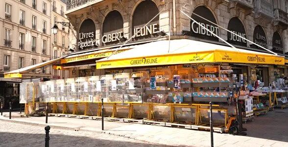 说起Gibert jeune这个名字,相信很多在巴黎上学的小伙伴们一定不会感到陌生。这间坐落在塞纳河左岸圣米歇尔广场上的书店,一直被认为是拉丁区的灵魂。那抹明晃晃的黄色,也成为了圣米歇尔广场上的标志。