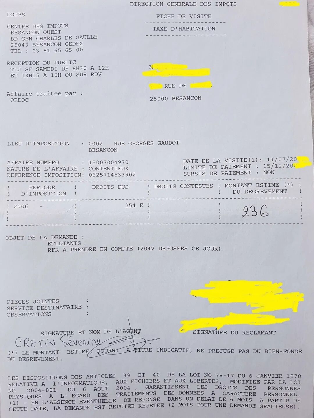 在法国居住超过一年的小伙伴,会收到住房税(taxe d'habitation)的单子。通过报税,你可以向税务部门申请减免住房税。