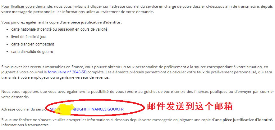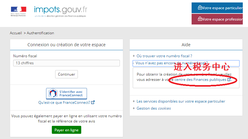 下方会出现一个蓝色字的链接“centre des Finances publiques”,点击进入。