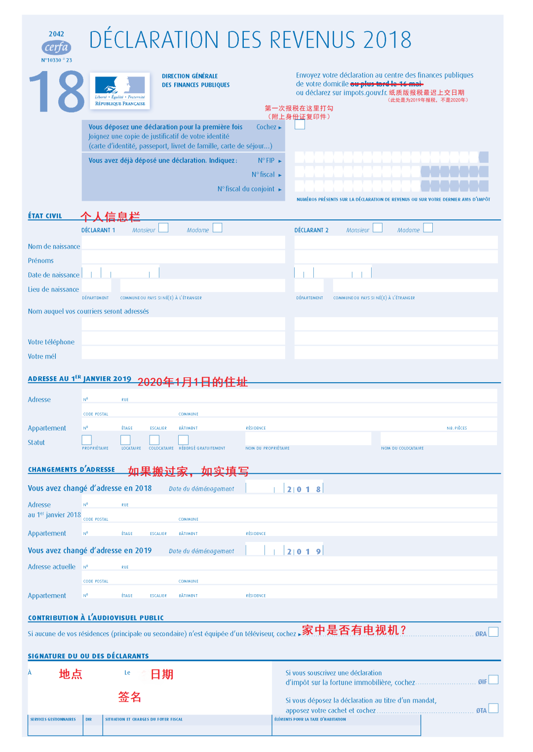 只要在法国居住超过6个月,即使没有一分钱收入,都要报税。