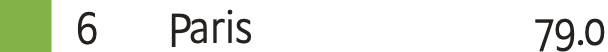 排在第十位的是瑞典首都斯德哥尔摩,得分78。