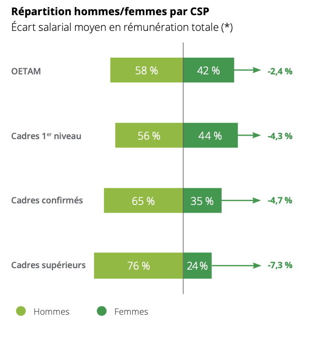 2021年,法国男女之间的平均工资差距为3.7%。四类打工人中:非干部人员、初级干部、中级干部、高级干部,男女薪资差距普遍存在。在管理层,职位越高,这种差距也越明显。