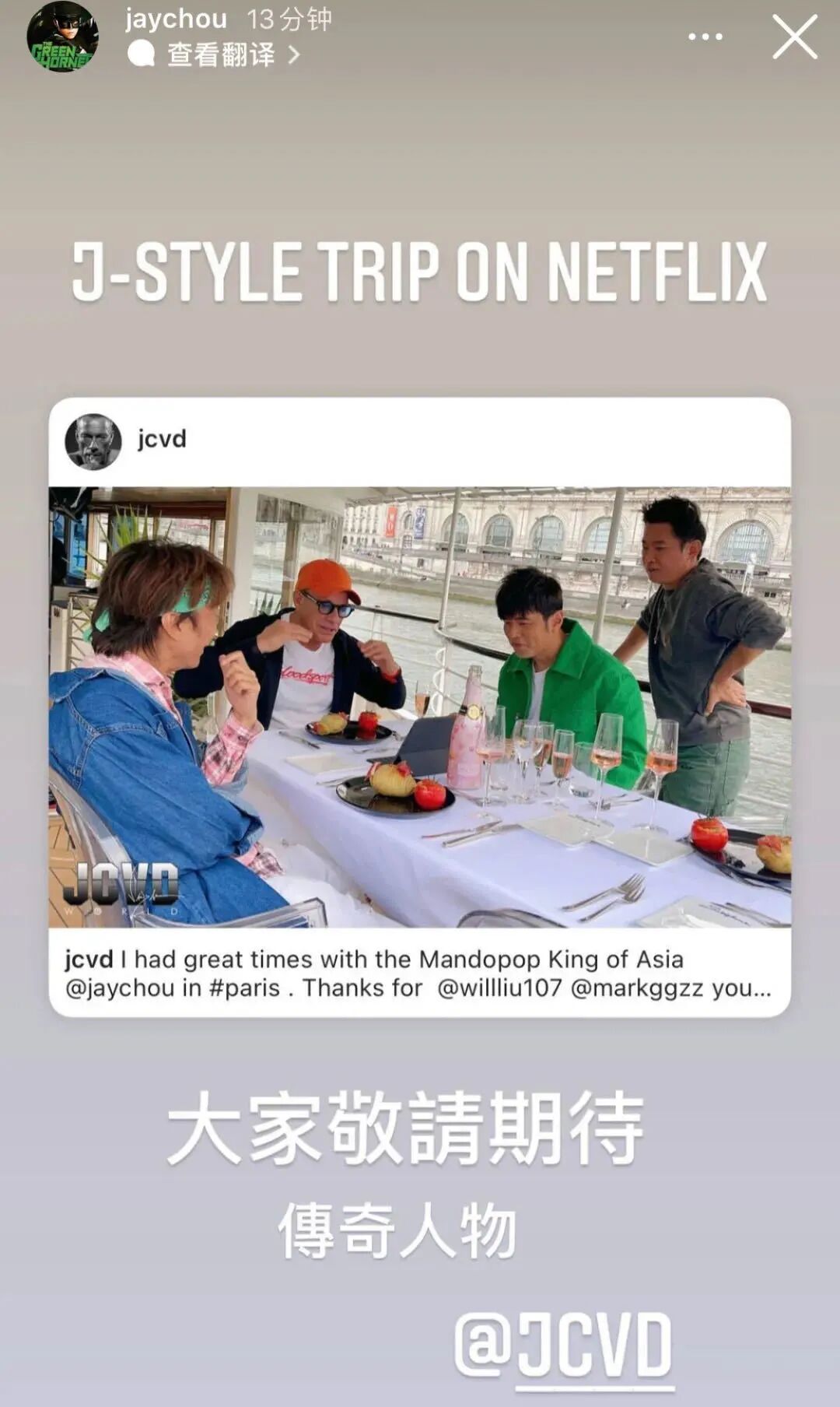 看来是周董又在拍《周游记》无疑了!不知道「周游记2.0」会带粉丝们探寻哪些巴黎景点呢?