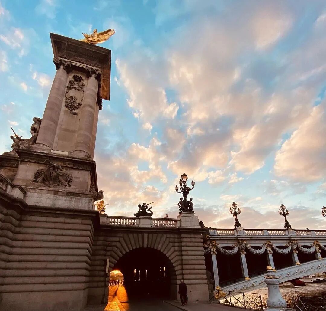 亚历山大三世桥横跨塞纳河,连接香榭丽舍大街区和Invalides区,是全巴黎最美的桥之一。迎着夕阳的余晖漫步桥上,耳机里再放着杰伦的《告白气球》,别提多浪漫啦~