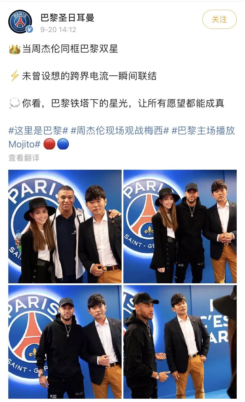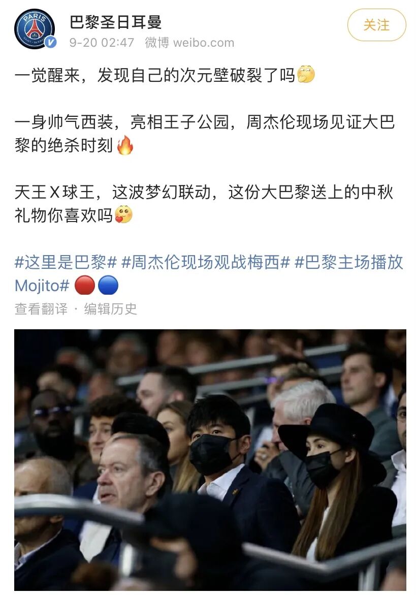 上个月空降法国的周杰伦,这次和大巴黎俱乐部一起登上了热搜。