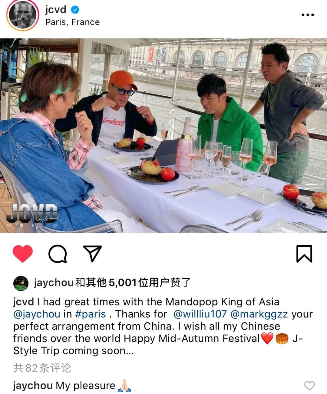 杰伦本人也表示非常惊喜!赶紧Merci beaucoup感谢了一番👇