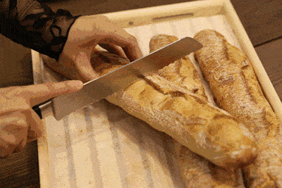 1.耳朵听:好的法棍出炉的时候会有“噼里啪啦”的声音,也就是常说的,好的法棍会唱歌,这是因为法棍内部气孔疏密均匀,所以发出的声音也非常规律。
