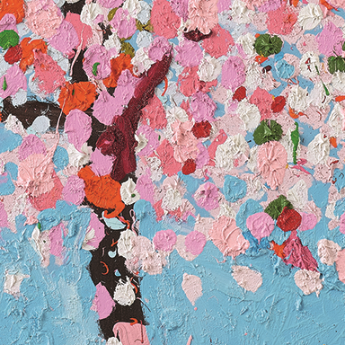 “樱花”系列是英国青年艺术家Damien Hirst对19世纪末和20世纪伟大艺术运动的回忆与致敬。在画布上, Damien Hirst用浓重的笔触将颜料混合在一起,既有印象派的风格,又有点彩派的感觉。作品所用的色彩都是明亮又饱和的,让我们联想到万里无云时繁花盛开的浪漫景色。
