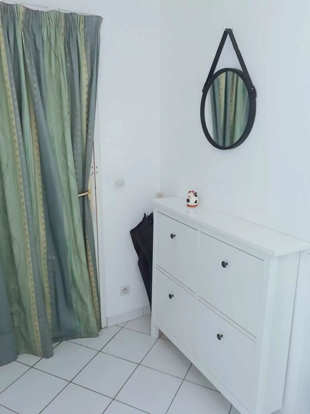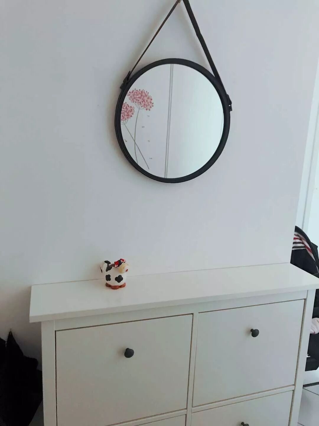 这款Hemnes系列的鞋柜,看着不起眼,但是按上以后效果非常好,妥妥的北欧风呼之欲出。而且,钉在墙上不占地方,至少能放八双鞋。再配上一款(Leroy Merlin买的)黑边镜子,是不是很“北欧”?