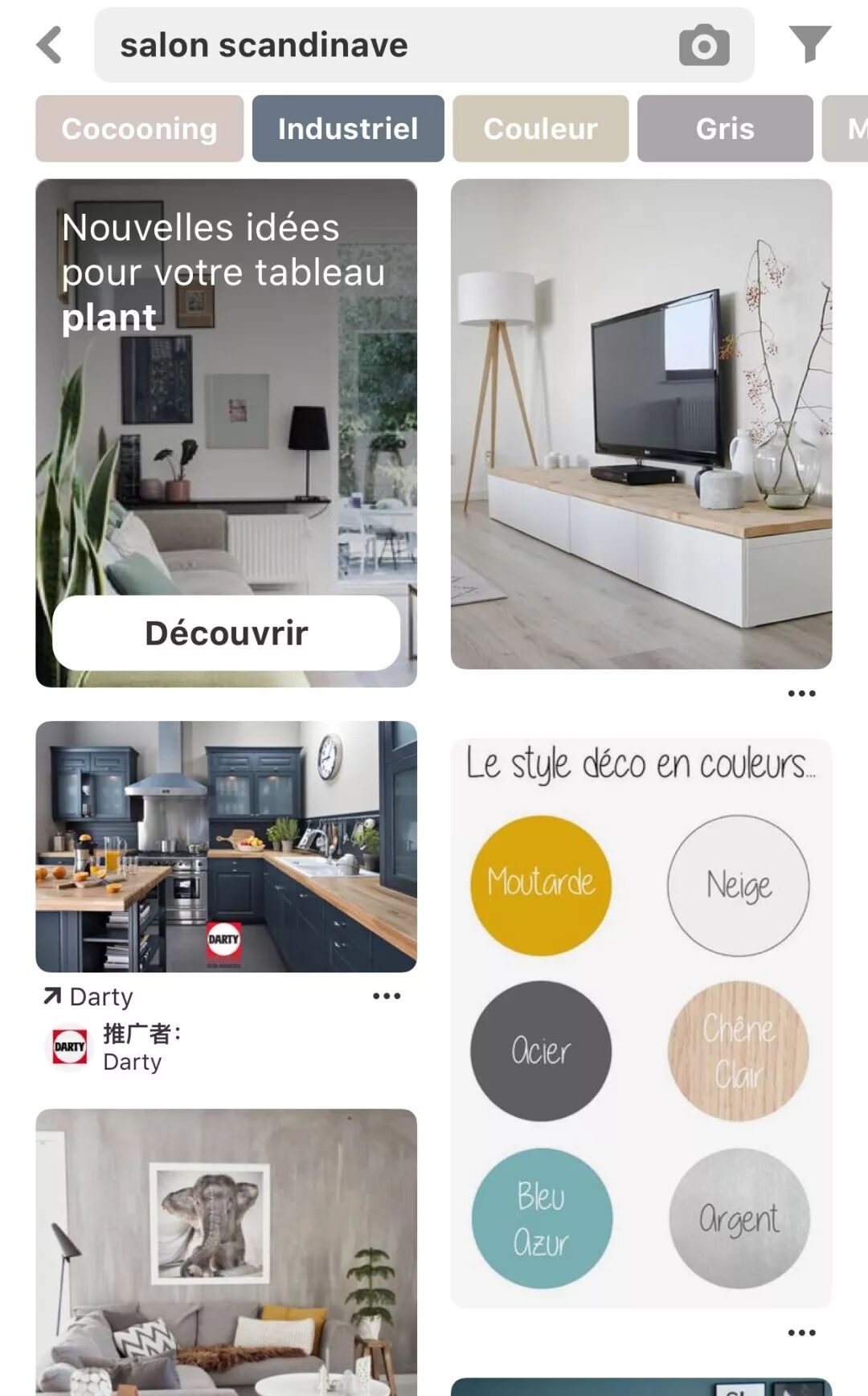 如果你想打造一款北欧风格的客厅,就可以搜“salon scandinave”,然后你就可以看到很多相关美图。