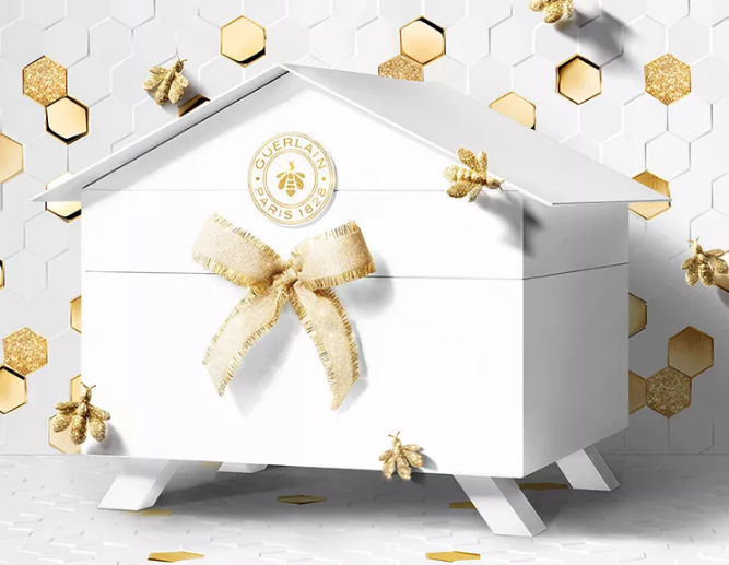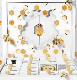 号外!Guerlain也在今年首度推出圣诞倒数日历!礼盒的外型是一个养蜂箱,而里面是大大小小的蜂巢图案,打开金色的缎带后就是25格抽屉,售价490欧,虽说价格贵了点,但里面的产品的确都是实打实的硬货!
