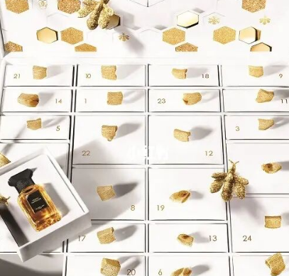 Dior“圣诞日历”一共24格,里面是近一年畅销的香水、口红等小样。