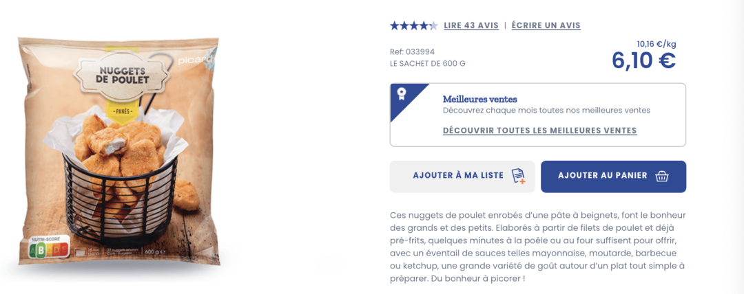 每次吃麦当劳和KFC的鸡块时,都会觉得也太贵了!看看Picard的速冻鸡块吧,6欧出头一大袋,什么时候想吃自己做就好啦~