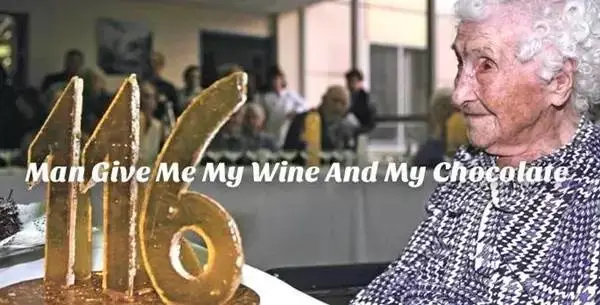 除了巧克力、香烟和橄榄油,Jeanne Calmen每天还会喝一杯波特葡萄酒,到了晚上会再喝一杯自制的白兰地。