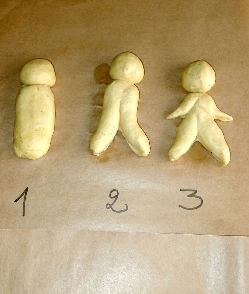 如何用面团捏出小人的“头部”和“身体”,是制作Männele的关键所在。