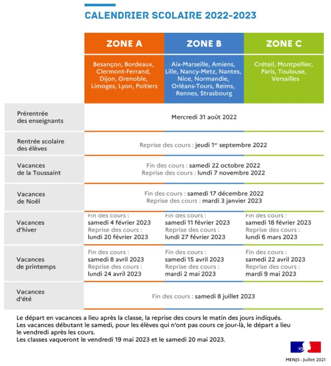 法国2022年学校假期✦