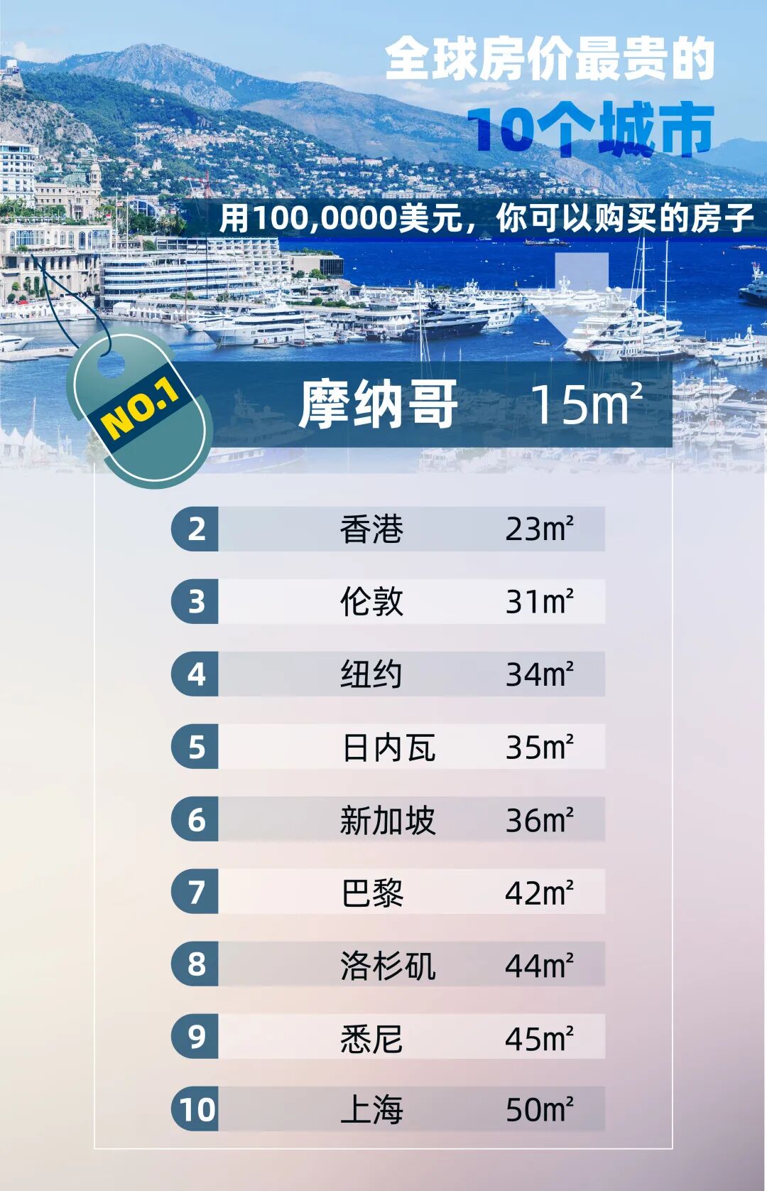 当然,这些房价都比不上摩纳哥。作为世界上最昂贵的城市,想花100万美金在摩纳哥买房?对不起,您只能购买一间15㎡的小隔断。