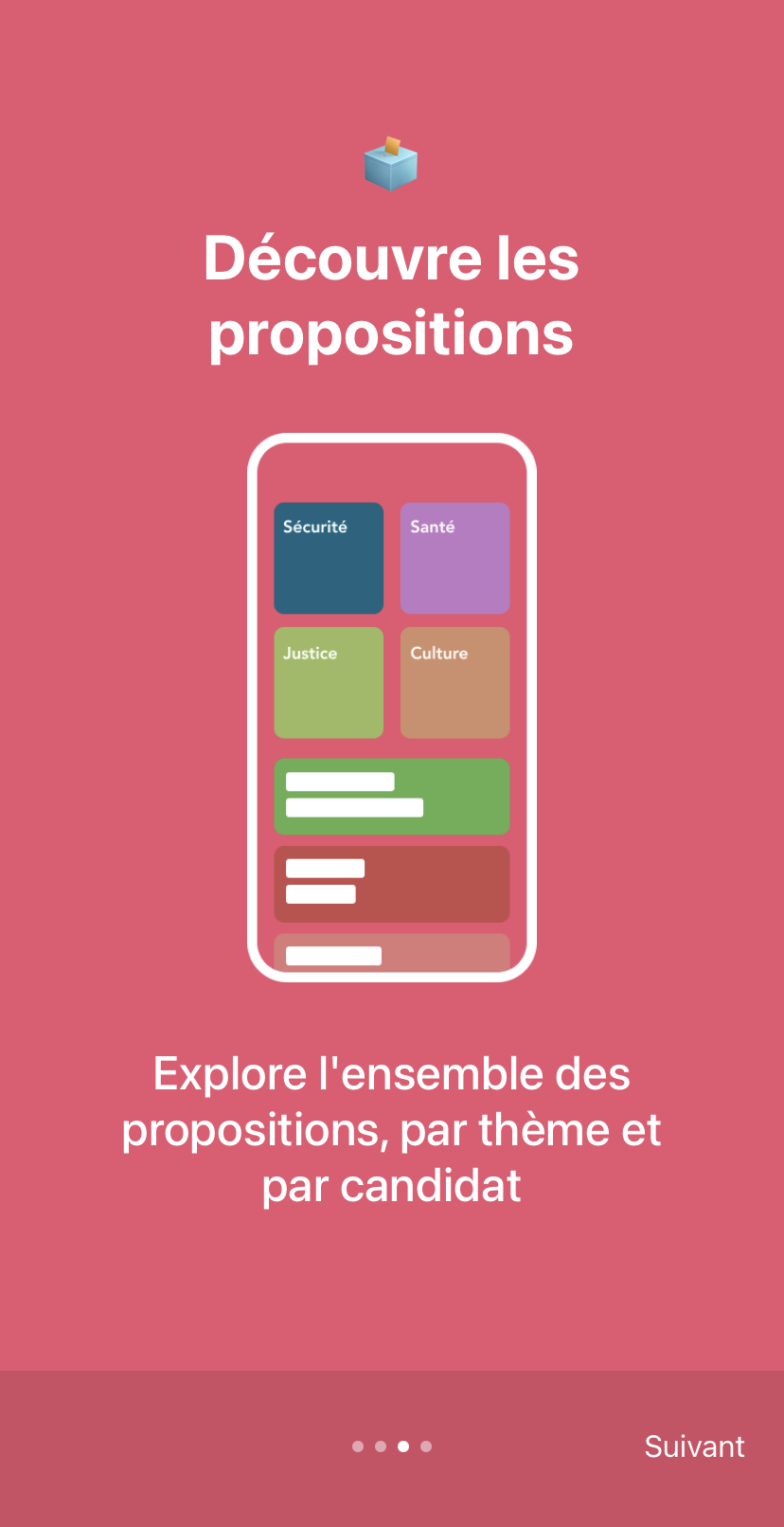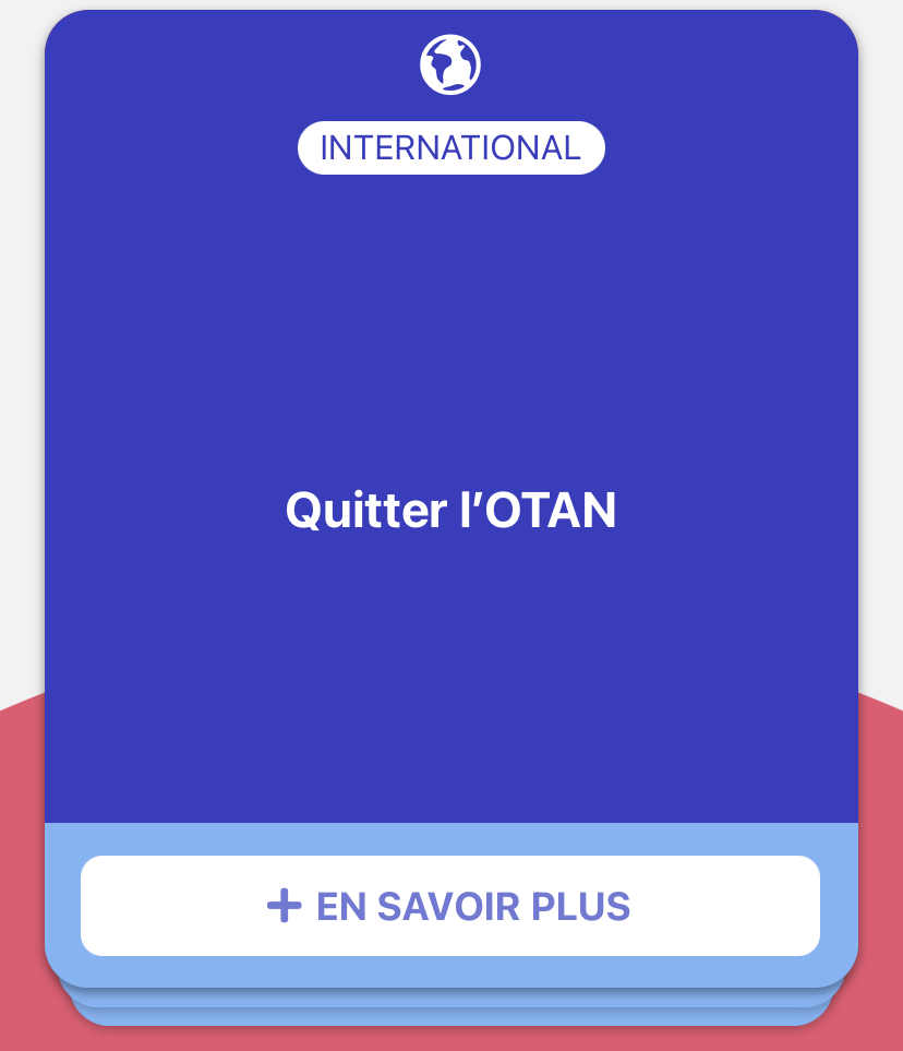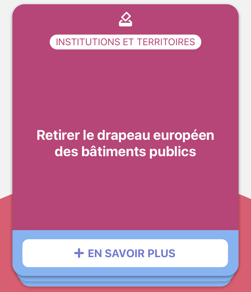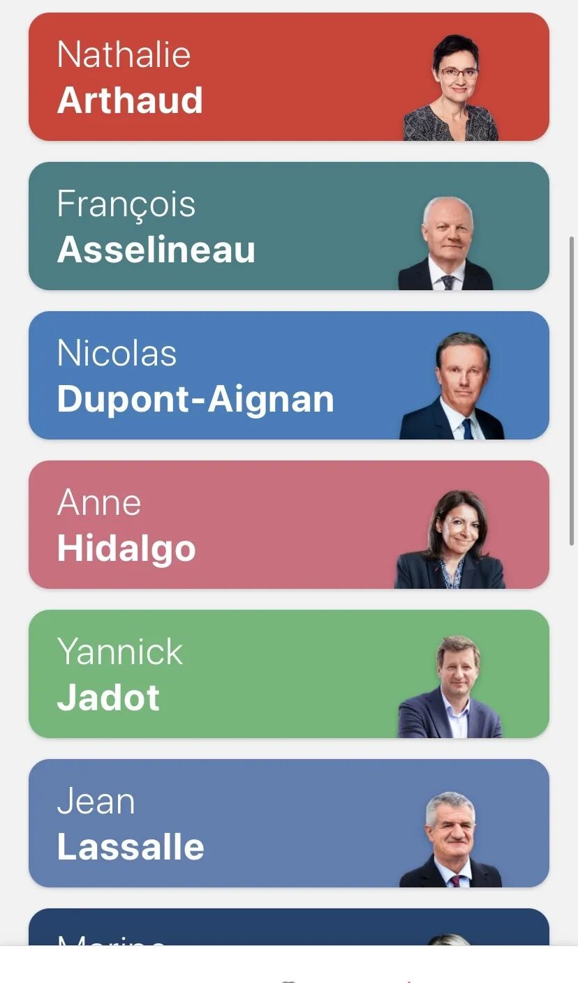 在应用程序中,差不多有500个提案被整合到数据库里,共分为十个主题,从经济到安全,包括环境和国际。联合创始人François表示:我们确保提案数量是平衡的,每个候选人都有同样多的提案,这个应用程序也保持完全中立的立场,对任何一个候选人都不会有偏袒。