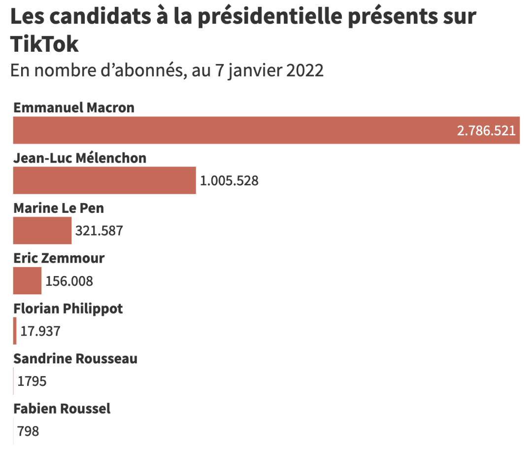 而近日,法媒LesEchos就调查了几位总统候选人的TikTok账号。👇