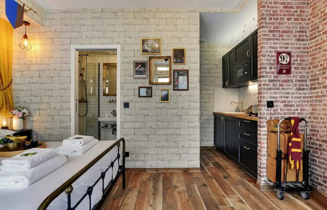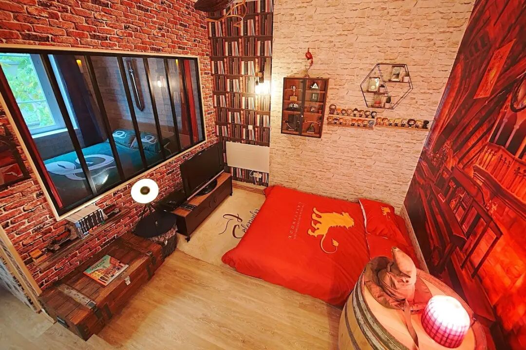 而巴黎的一家民宿,里面就有这个站台的装饰!这是首都唯一一家以《哈利·波特》为主题的住宿,这家民宿的主人叫Laurent,他买下了位于巴黎15区的一家老店,并将其改造成一个灵感来自于哈利·波特世界的Airbnb。它包括一个独立的厨房,一间浴室,一张双人床,可容纳两名旅客。