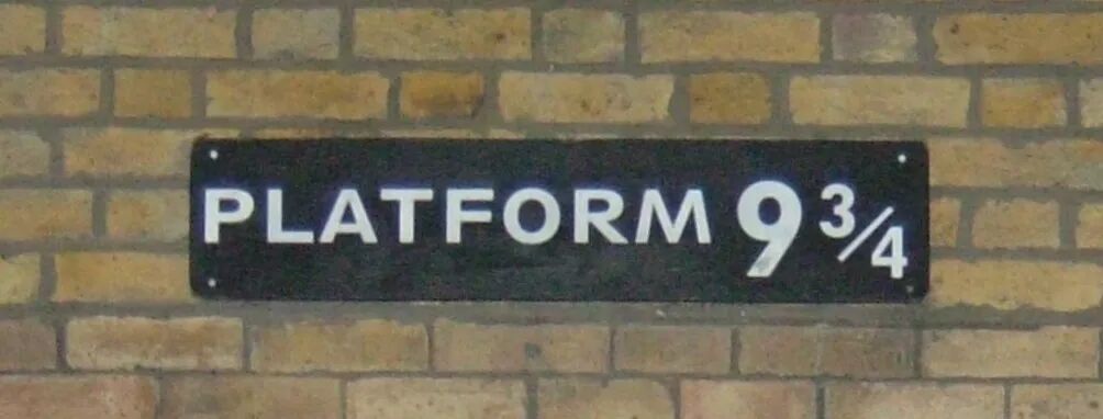 在哈利·波特系列电影里,9¾站台的场景实际上主要是在国王十字车站的第4号和5号站台之间拍摄的。而电影之后,国王十字车站将9¾站台的牌子和那辆手推车建于第8和第9站台之间的墙上,每年吸引了成千上万的影迷前来打卡。