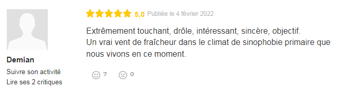 “非常感人、真诚、客观。我透过这部影片了解到真正的中国人民和中国家庭。”