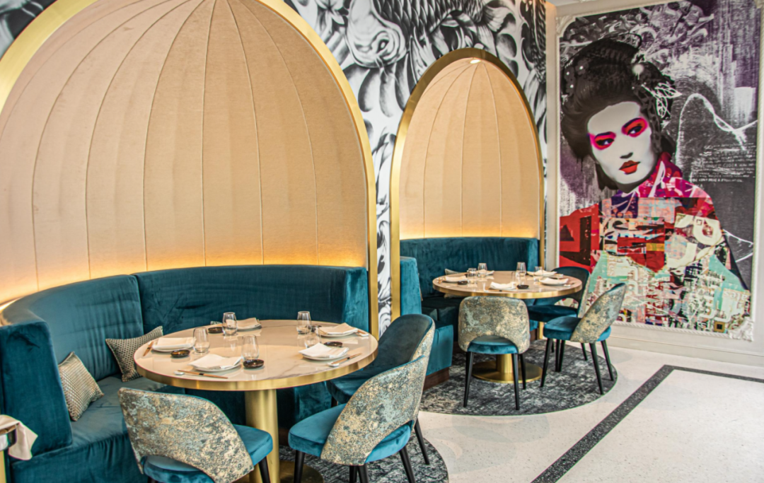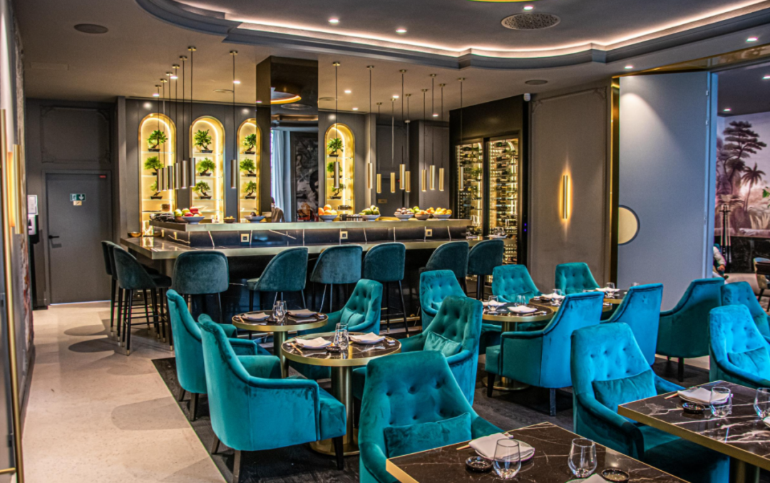 YAKUZA by Olivier, PARIS(奥利维尔的极道,巴黎)的店内装饰以日本极道(YAKUZA)文化为主,融合了亮眼的蓝绿色,时尚且充满个性。