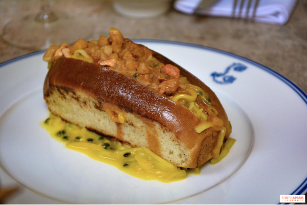 他们家最热门的主食是这道新英格兰龙虾卷(Lobster-Roll Nouvelle Angleterre)。这个传说中征服了无数美食爱好者味蕾的著名三明治,内里搭配了甜咸口味的芒果&百香果酱:独具个性的完美组合。在入口即化的龙虾肉、增加咀嚼层次的百香果颗粒和柔软得如同云朵的面包之间,任何人都会为之折服。