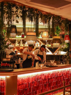 你想要见识一下巴黎餐厅的浪漫之最吗?那没有比COCO更适合的地方了。特殊曲线的天花板和餐桌上一盏盏水母造型的小灯相得益彰,配合巨大的棕榈树和富有情调的灯光仿佛穿越进了《了不起的盖茨比》的时代。