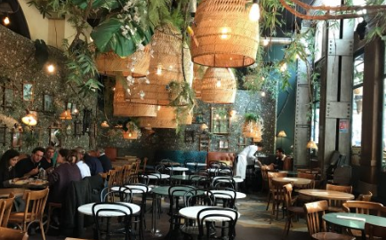 Café Le Brébant的美貌可以挤进巴黎餐厅的前几名,灯光斑驳的精致的鸟笼灯和绿叶鲜花的墙纸让人仿佛置身童话世界,花鸟世界梦幻感十足!