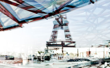 LES OMBRES Quai Branly 餐厅位于郁郁葱葱的花园中心,临靠埃菲尔铁塔,可欣赏到独特的巴黎全景,整个餐厅天花板都是透明玻璃,360度的环绕玻璃窗,无论坐在餐厅的哪个位置都能将艾菲铁塔一览无遗。晚上闪闪发亮的艾菲铁塔更是让人赏心悦目,无论哪个时段来到这里都能欣赏到不一样的美景。