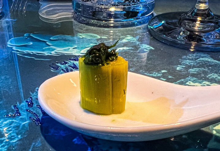 餐饮也是极具海洋特色,以鲸鱼样子的开胃菜开始,前菜是色彩斑斓的珊瑚礁,而主菜则是鲨鱼和甜点以及美丽的海蜇。