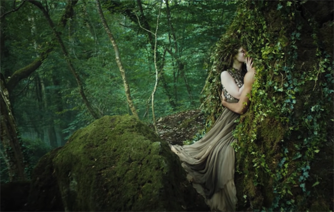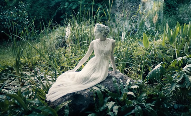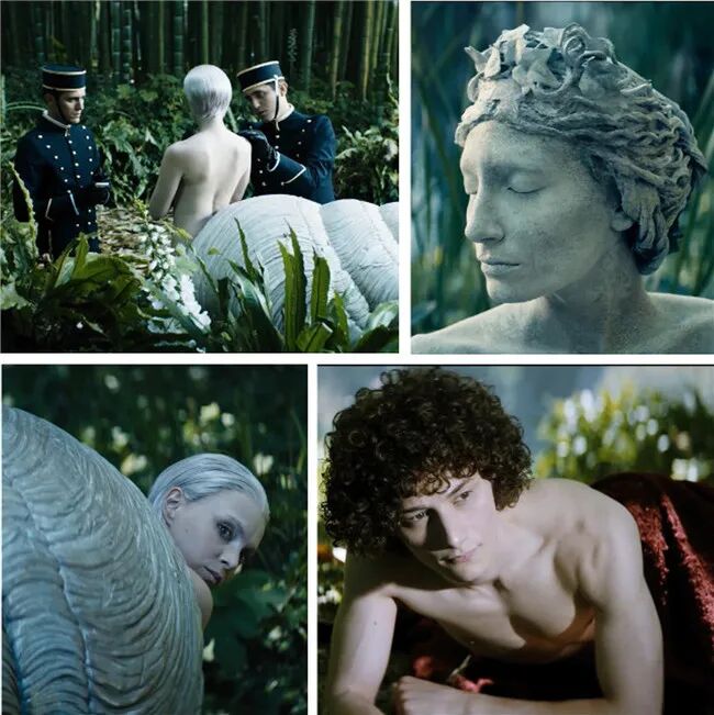 Dior创意总监Chiuri邀请意大利电影制片人Matteo Garrone了创作的“原始森林、烟雾缭绕、美人鱼游过浅水湖”的曼妙画面,用仙女、人鱼、石雕和兽人来作为此次高级定制服装的模特,设计打造了一出《迪奥传说》(Mythe de Dior)。
