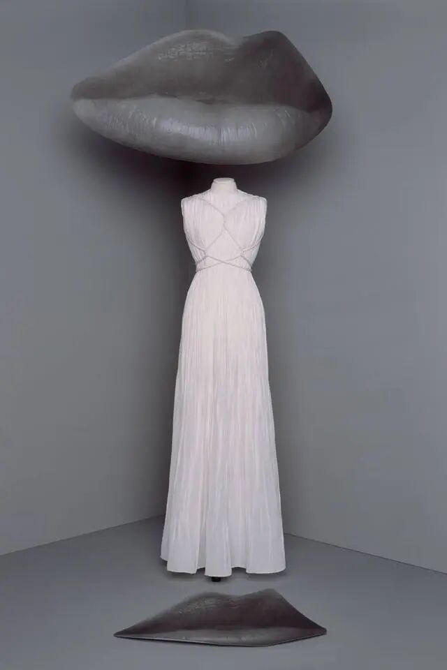 Dior为厄科穿上了一袭象牙白的褶皱无袖长裙,胸口前用环绕的绳结将腰部线条勾勒得更为紧绷,从而凸显厄科冷峻的岩石表面,突出她简洁、永恒的对称美。