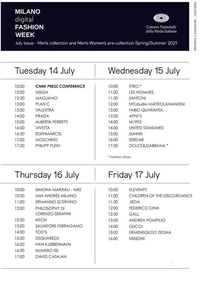 附:米兰数字时装周日程表