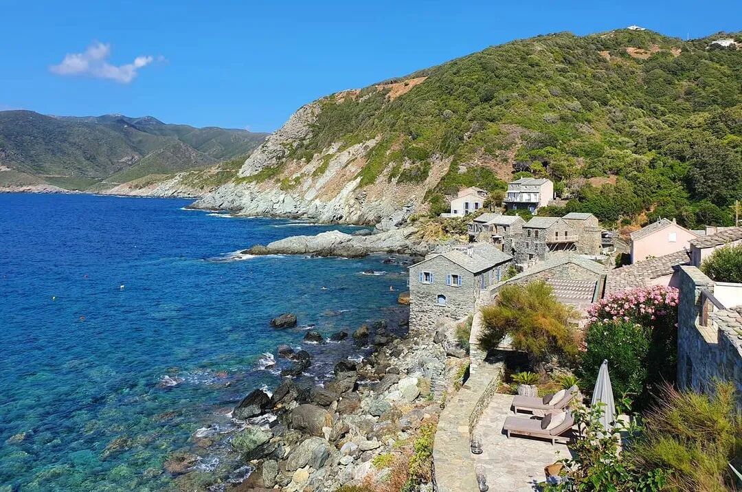 这个小镇约有150人居住,位于巴斯蒂亚(Bastia)以北50公里处的科西嘉角,一侧是蔚蓝的地中海,一侧是Monte Cupieta山脊,光看图片就让人无限向往。