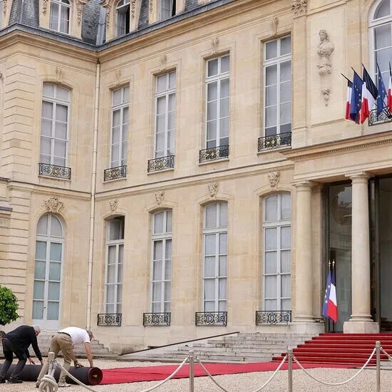 典礼、国事访问......在每个重要场合,爱丽舍宫的院子里都会铺上一条60米长的红地毯。