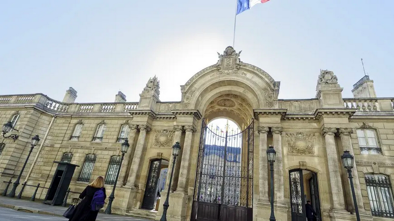 位于巴黎第八区的爱丽舍宫的大门。图源:法新社/Daniel Pier / NurPhoto / NurPhoto