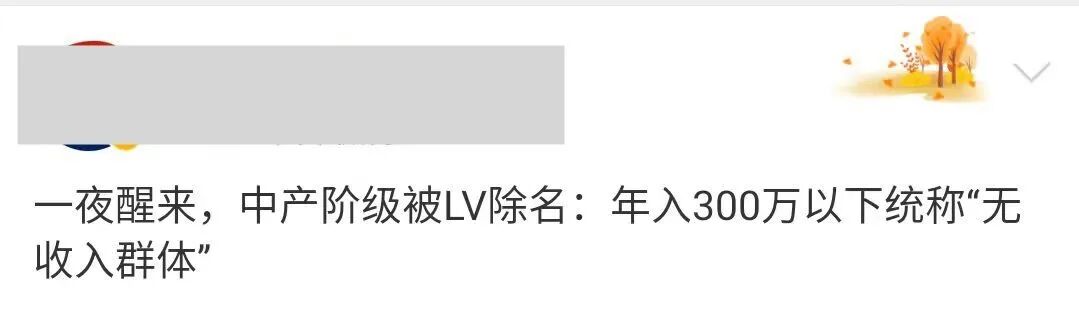 图中赫然写着:个人年收入低于300万的,包括学生及普通白领,在这些高管眼中,沦为“无收入”人群。对此,首先心态“崩”了的是国内的中产阶级精英,有人表示“一夜之间被除名”: